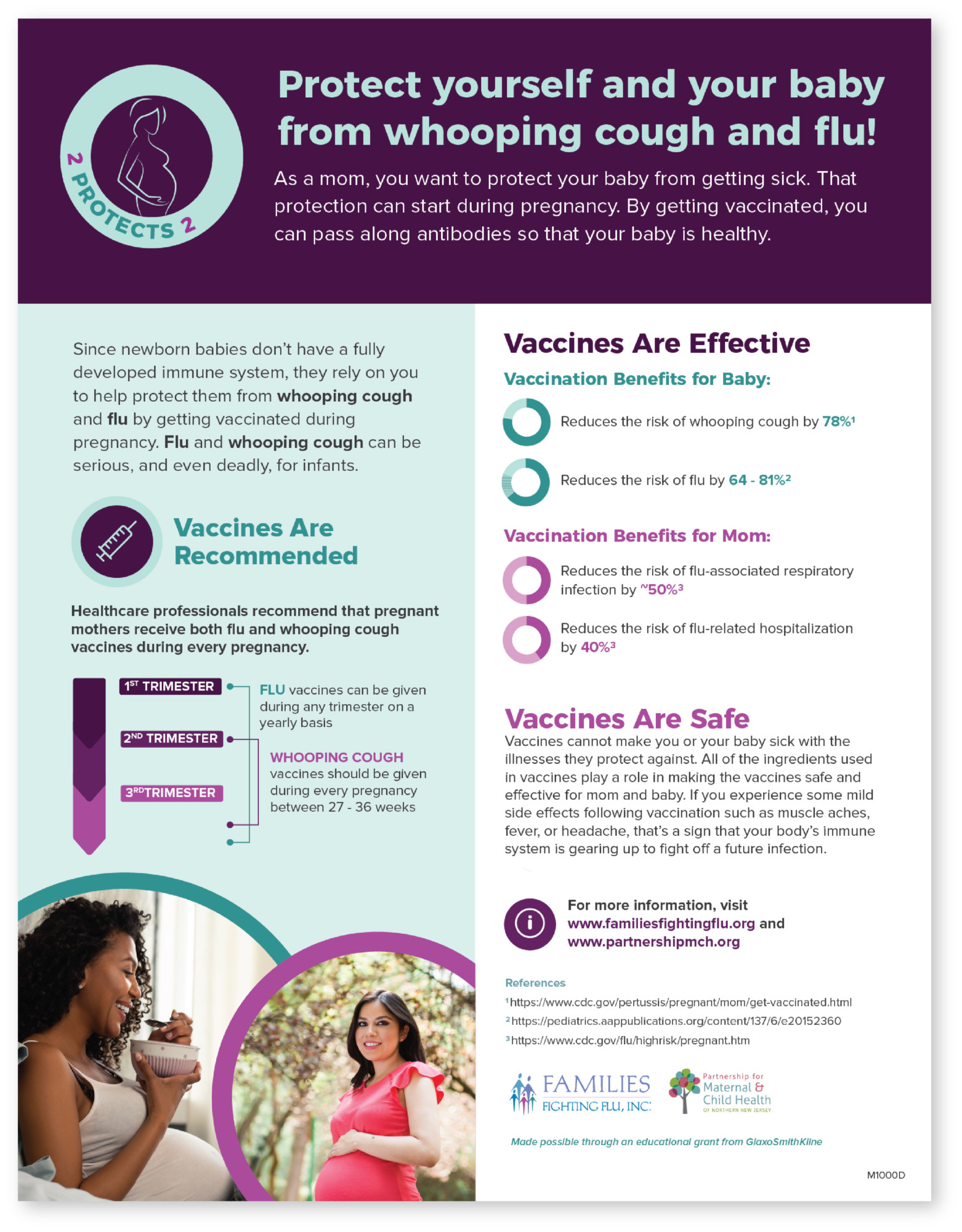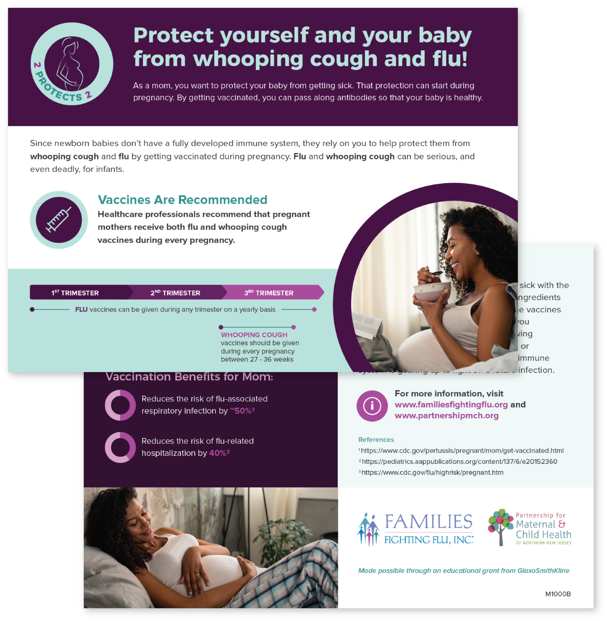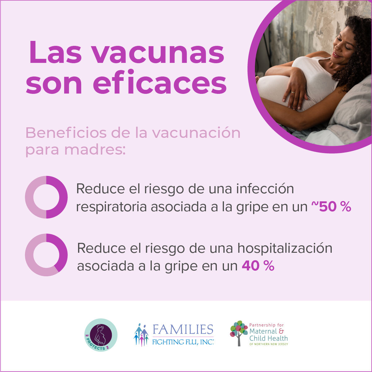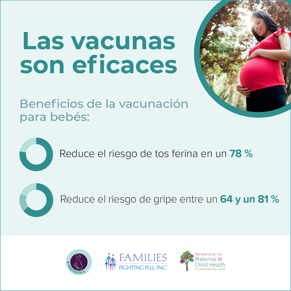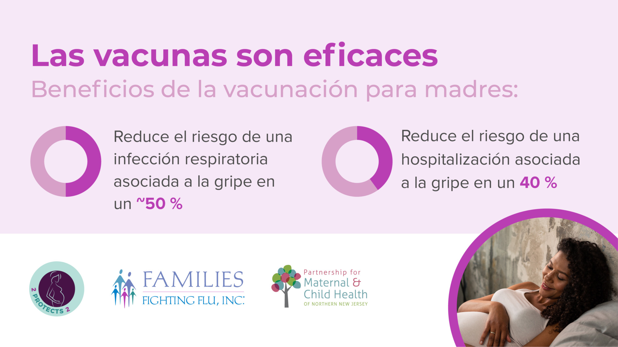 2 Protects 2 is a collaborative educational program between Families Fighting Flu and the Partnership for Maternal and Child Health of Northern New Jersey aimed at increasing public awareness about the importance of influenza (flu) and pertussis (whooping cough) vaccinations for pregnant women.